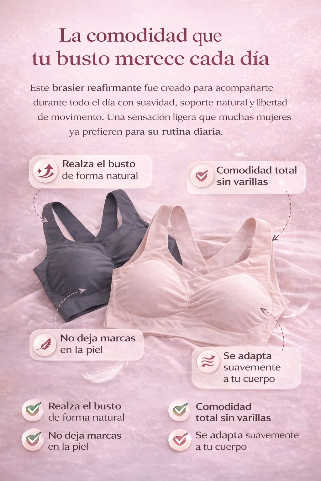 "Son súper cómodos. No tienen varillas y aún así dan buen soporte."